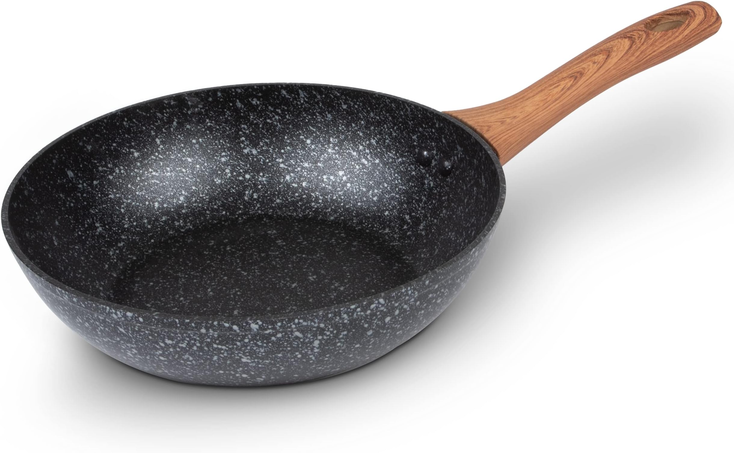 NonStick Cast Iron Wok Small Wok Pan with Iron Lid Wodden Handle Suitable for All Overall, for a single person or two, this is the best small cast iron wok that comes with a lid 8-Inch, Black, Carbon Steel Small Wok, High Wall Construction, Flat Base, Ergonomic Flame Guard Handle, Non-Stick Wok Pan for Stir Fry and Sautéing Seasoned with oil for a natural, easy-release finish that improves with use, this cast iron mini wok retains heat well